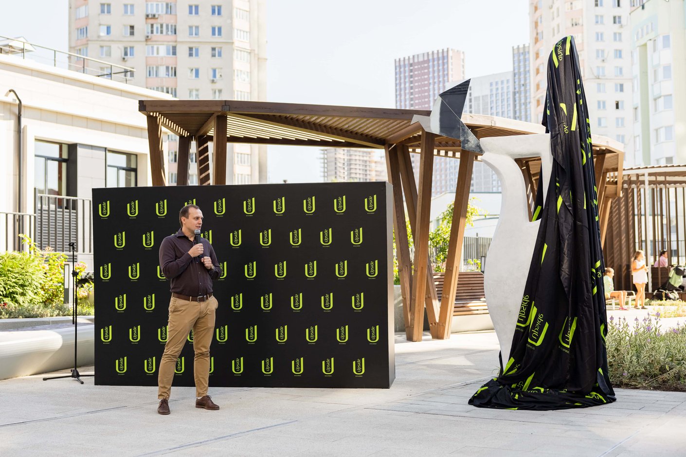 В ЖК «Любовь и голуби» мы открыли арт-объект, символизирующий любовь, чистоту, мир и надежду. Это композиция «Жест», в виде раскрытой ладони и голубя, который улетает с нее, или же, наоборот, садится с доброй вестью – это каждый решает для себя.