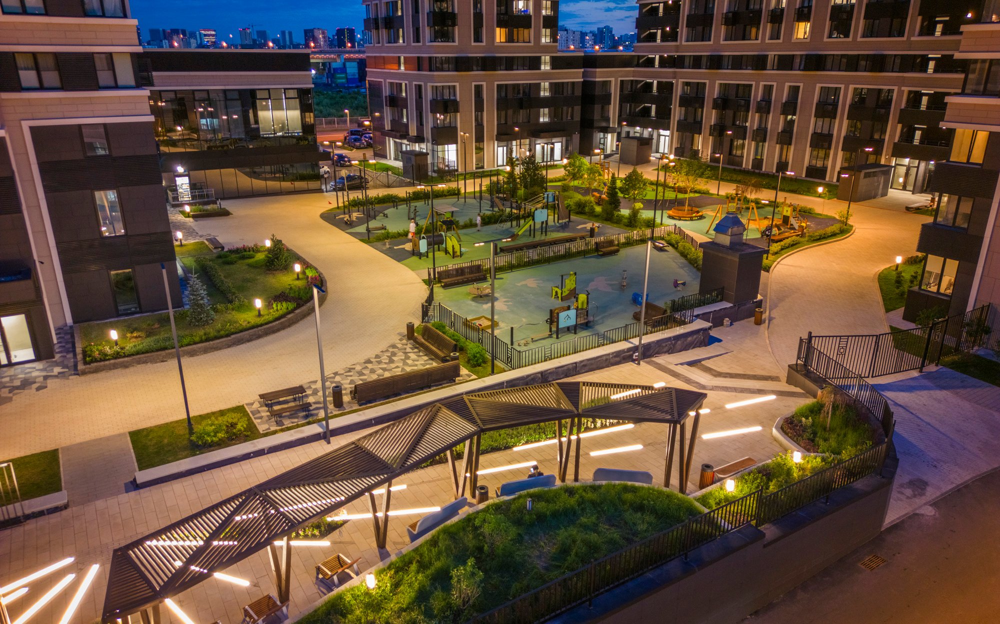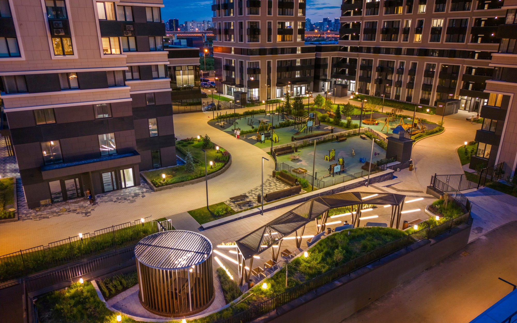 «Любовь и Голуби» — это жилой комплекс с выразительной, современной архитектурой. Он состоит из трех 22-этажных корпусов с двухуровневым подземным паркингом и этажом с кладовыми помещениями. Также проектом предусмотрено строительство школы и благоустройство спортивной игровой площадки с собственным игровым полем, трибунами для болельщиков и лаундж зоной. Проект разработан при участии архитектурного бюро SPEECH.